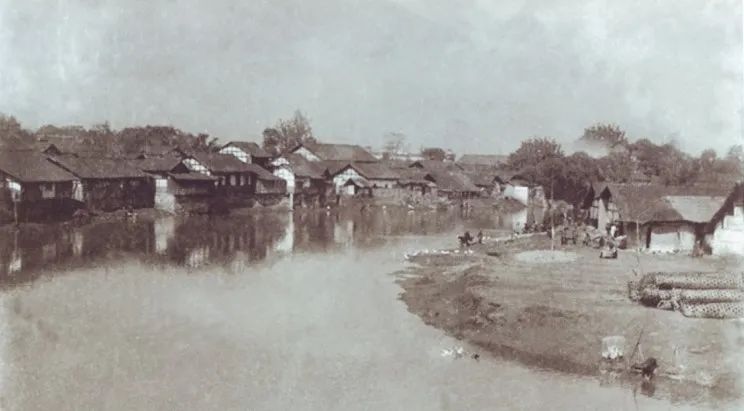 20世纪40年代万里桥边的吊脚楼(翻拍自《成都城建百年经典图册》)郫江、检江的开通,使水患横行的成都平原成为鱼米之乡,又方便了水运,给成都带来了繁荣。秦昭王年间,蜀郡守李冰于二江之上应天上七星建七桥,合称“七星桥”。七桥之首名叫“长星桥”,为七孔石板桥,因桥下有一眼笃泉,所以又叫“笃泉桥”。三国时期,蜀国费祎出使东吴前,诸葛亮来到这里为他送行,费祎对诸葛亮说:“万里之行,始于此矣!”后“长星桥”改名为万里桥。