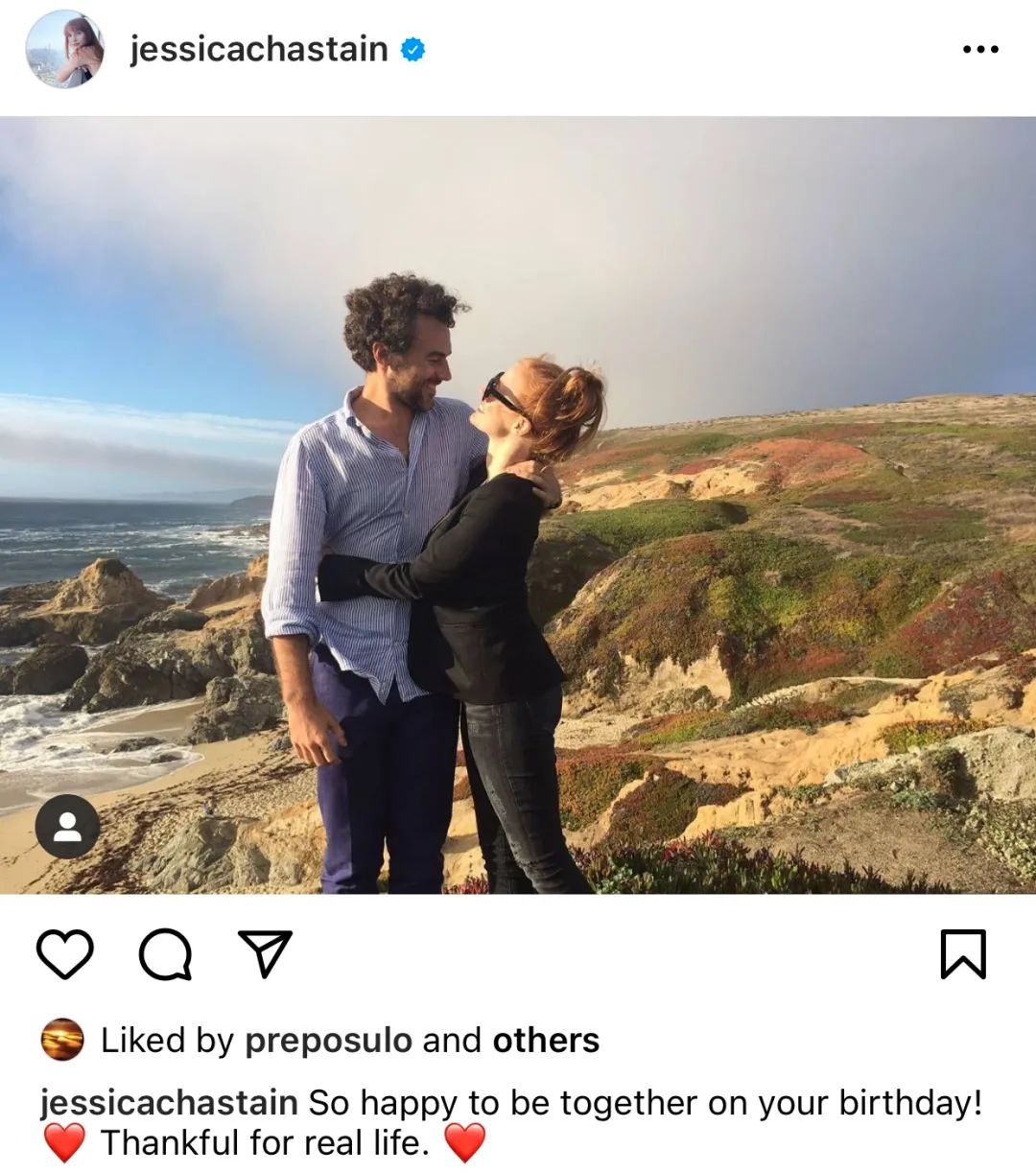 2012年,Jessica第一次被提名了奥斯卡最佳女配角的当天,她在巴黎的一场时装秀跟他相遇,四目交接,天雷勾动地火,她说,人生最幸福的事好像都在那一天发生了。