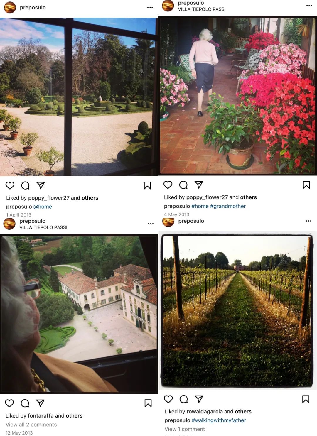 ▲ 他曾在ins晒过家中的景致,还有坐着直升机盘旋而上的祖母(左下)。说到两人邂逅的桥段也充满了命中注定的意味。