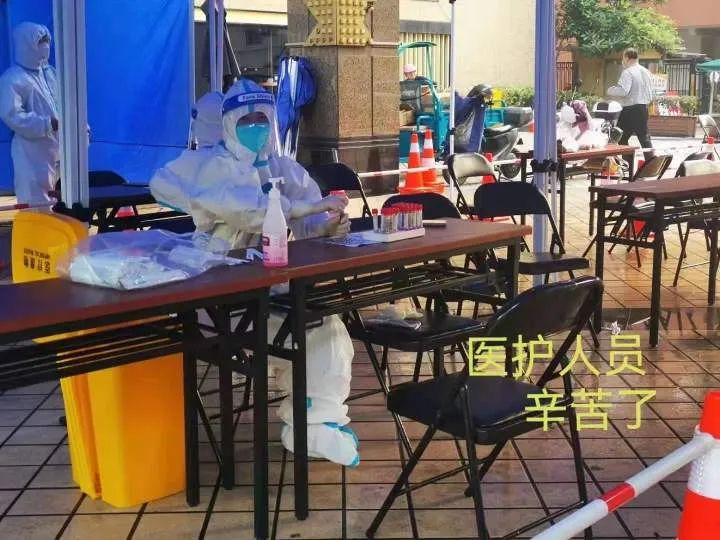 小时新闻的用户“咩咩咩”是我们的老朋友了,她住东新园,给小时新闻发来了现场做核酸的视频。“咩咩咩”告诉记者,昨天傍晚东新园社区就下发了做核酸的通知:“今天一大早,五点一刻,早起的居民们就看到小区公园里大白们已经做好了核酸检测的准备。不一会儿,各个核酸检测报点就排起了队。大家自觉拉开距离,做好自我防护。这个一定要积极配合的。”