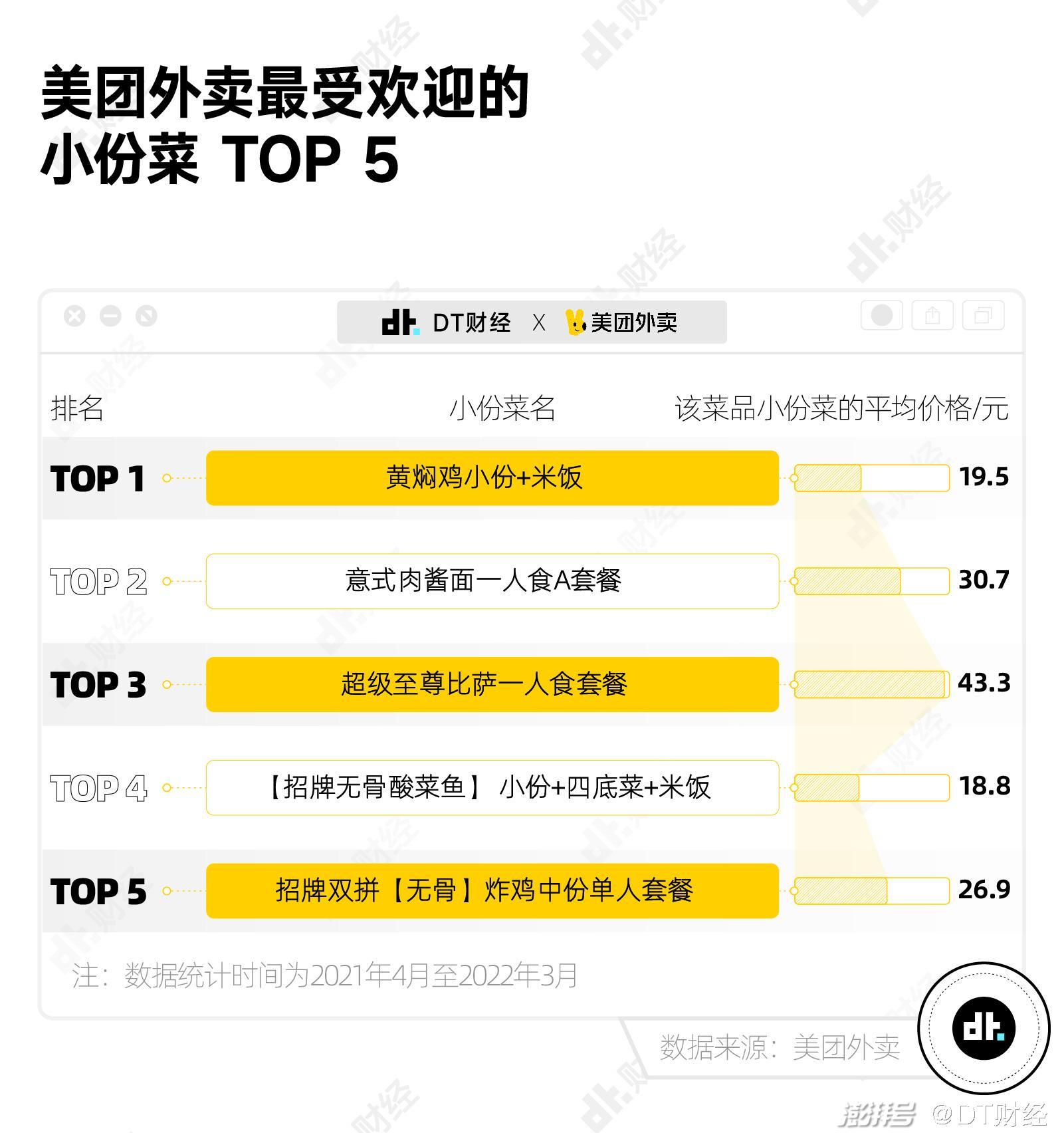 这其中,“黄焖鸡小份+米饭”凭借物美价廉、营养丰富成为最受欢迎的小份菜top1。意式肉酱面、超级至尊比萨、酸菜鱼等也受人欢迎。