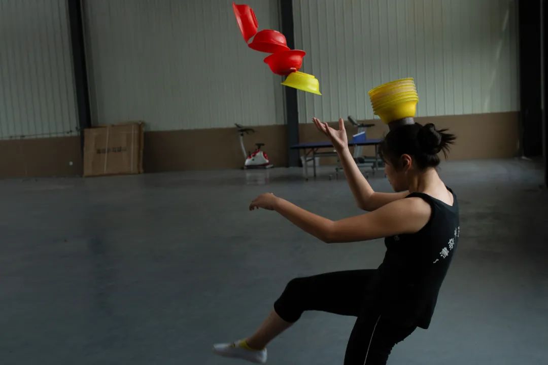 2017年6月9日,踢碗训练。意念随着韵律,动作伴着节奏,舞动的碗和舒展的肢体浑然一体。
