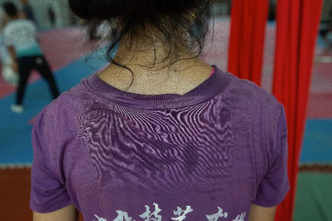 2017年6月9日,一套绸操的动作做下来,就是一身的汗水。