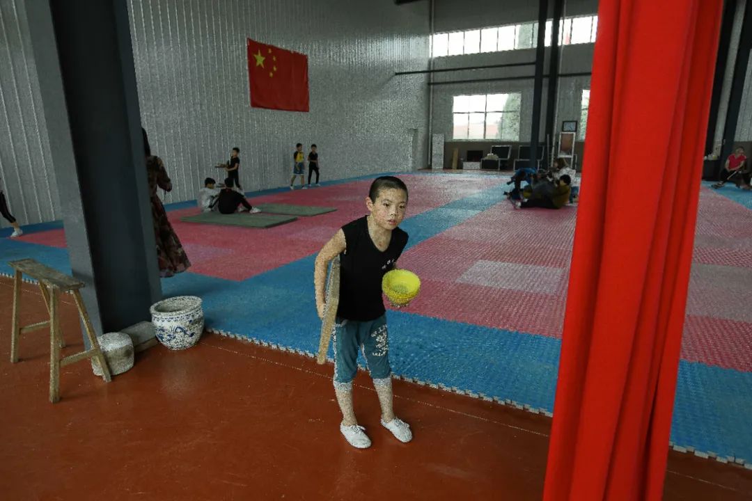 2019年6月5日,5岁的张千乐是杂技学校里最小的学员,来校一个多月了,看到大哥哥大姐姐们的训练,忍不住跃跃欲试。