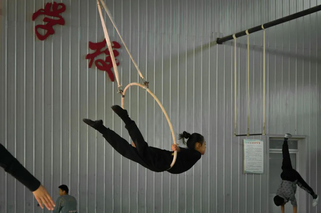 2021年11月11日,宋雨落在进行空中圈环训练,空中的圈环里飞舞着一个少女的梦想。