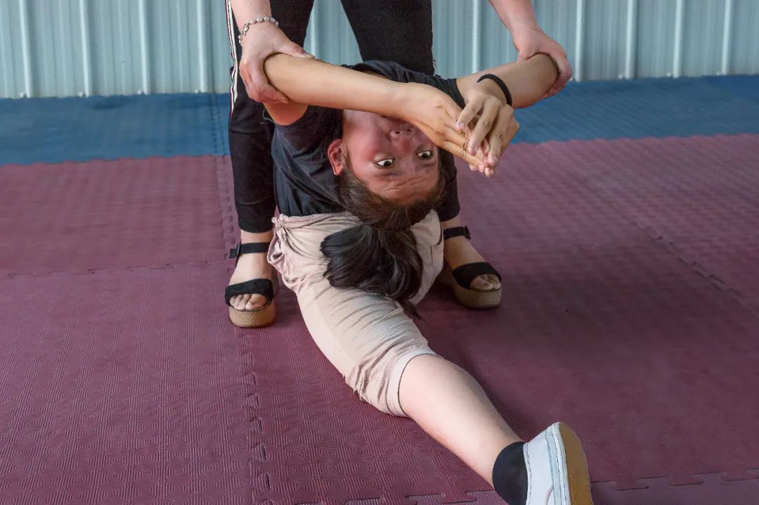 2019年6月5日,转毯训练。刘佳美身体素质好,专练柔术类技艺。
