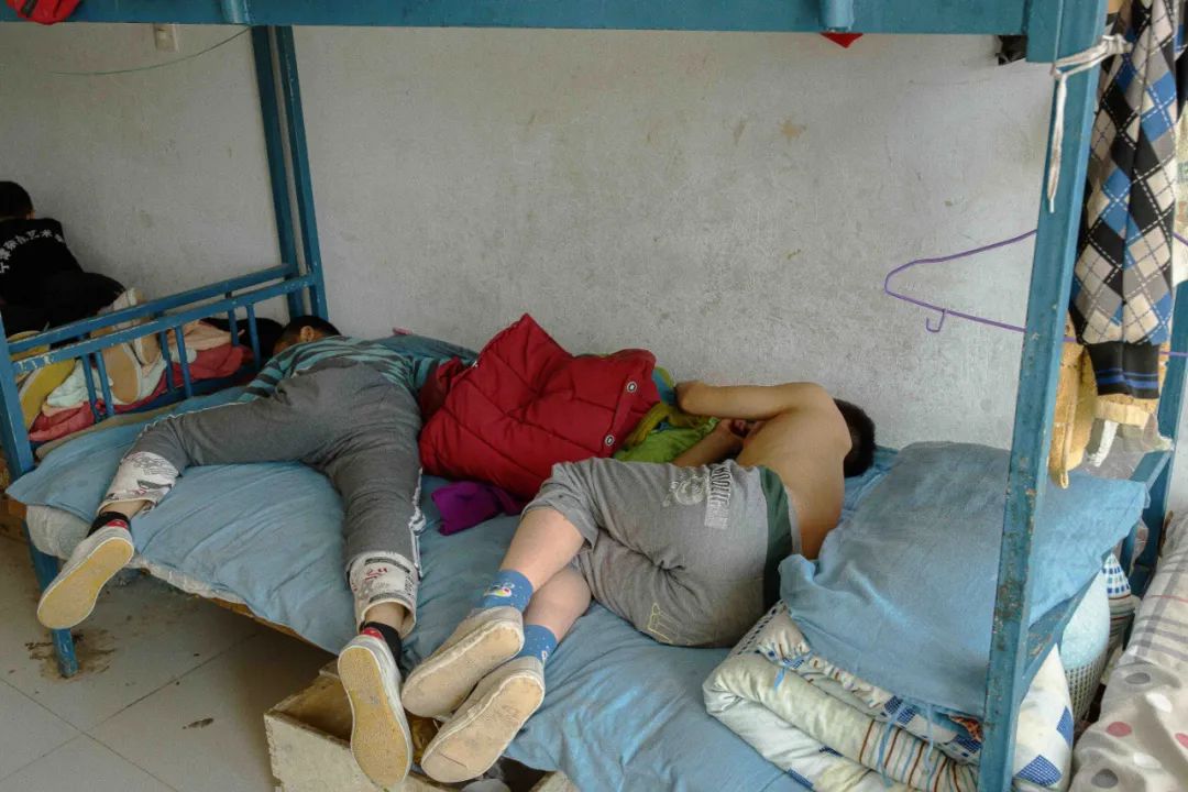 2017年4月29日,孩子们练到精疲力尽,回到宿舍里倒头就睡。
