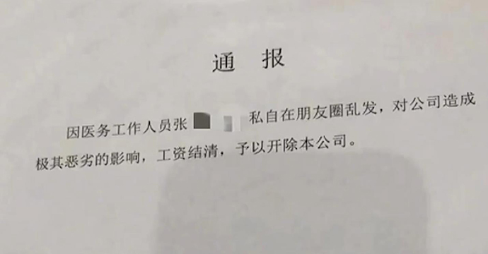 据睢县人民政府网站消息,河南睢县人力资源和社会保障局22日发布通报称,4月21日,针对网上反映“睢县康梦园医养保健服务有限公司(原康宁医养中心)开除员工”一事,河南省商丘市睢县人力资源和社会保障局劳动保障监察大队已展开调查,将按照有关法律法规办理,切实维护劳动者合法权益。据@中国新闻网 报道,近日,有网友爆料称,自己发朋友圈“羡慕人家工资按时发放”,同事评论“我也羡慕”竟被一起开除,引发热议。