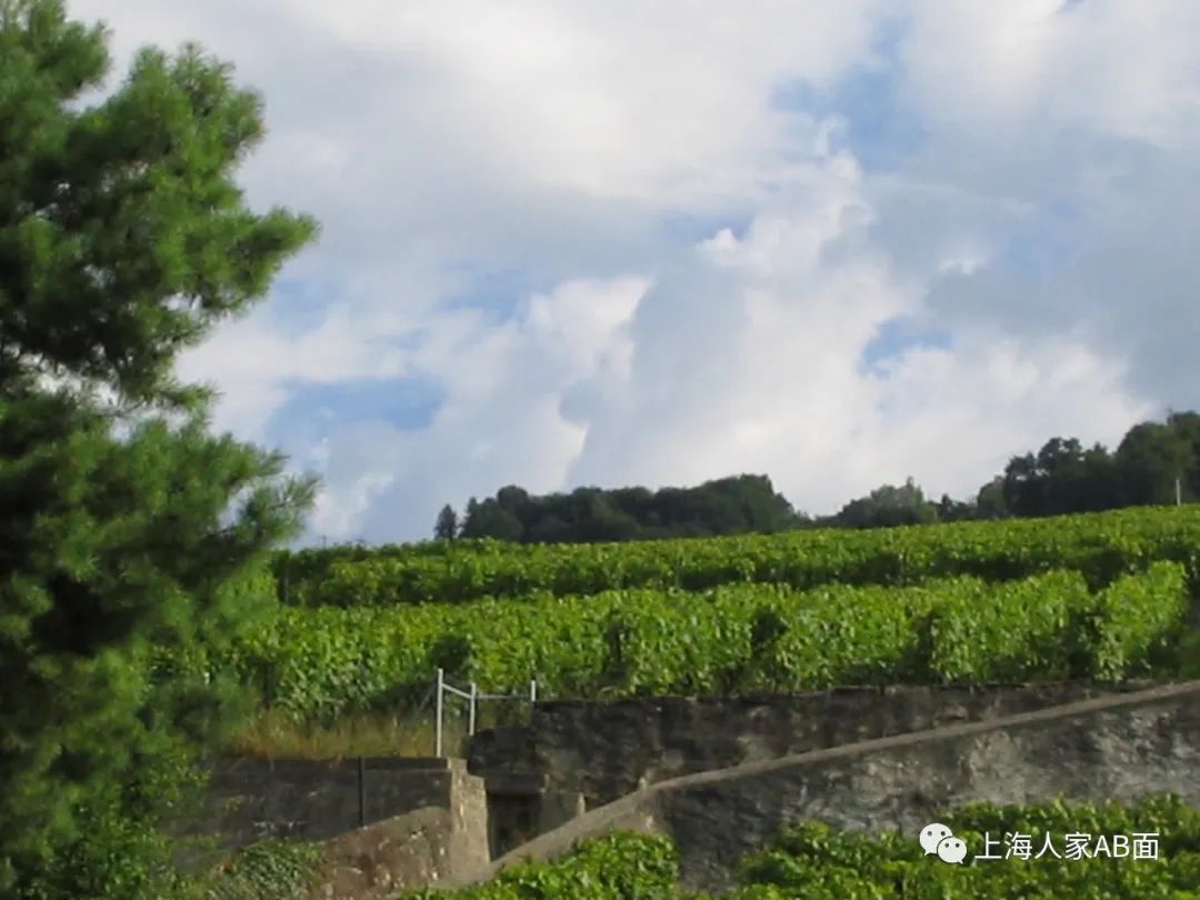 我们住的酒店背靠山。从山脚往上,满山满坡葡萄绿盈盈一片。葡萄园始建于12世纪,人称“拉沃梯田式葡萄园”,全长18公里,面积898公顷。放眼望去,行行葡萄如排排波浪从山顶翻滚下来。爬上山坡一看,葡萄园里有人家,半山腰里有公路。再往上,还有道路如玉带缭绕。