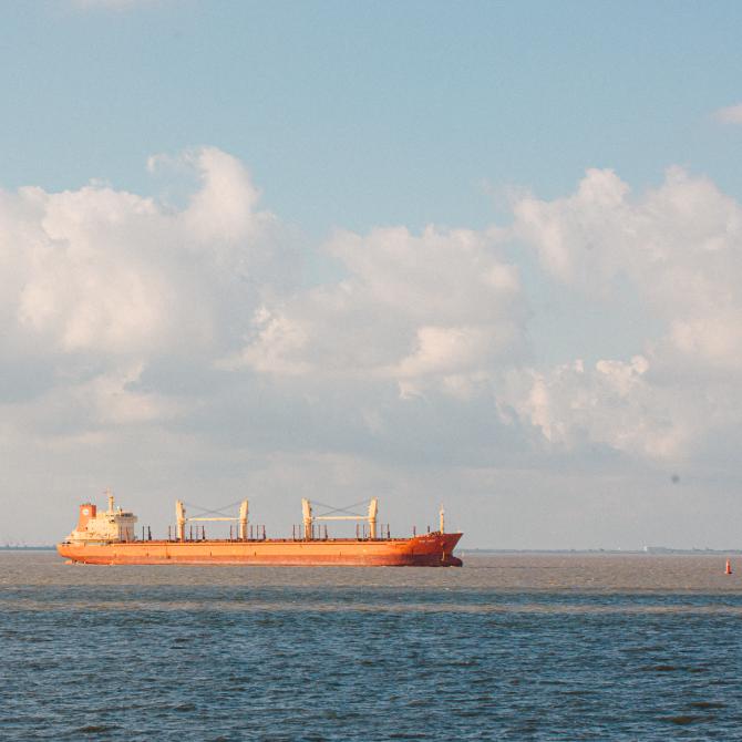 这里的堤坝是有一点高度的,不走到最边缘看不到大海的全貌。但只要靠近围栏,眼前便豁然开朗。太阳刚刚出来,天空是粉蓝色与紫色的渐变,海上的船只静静地飘着,海面一望无际。