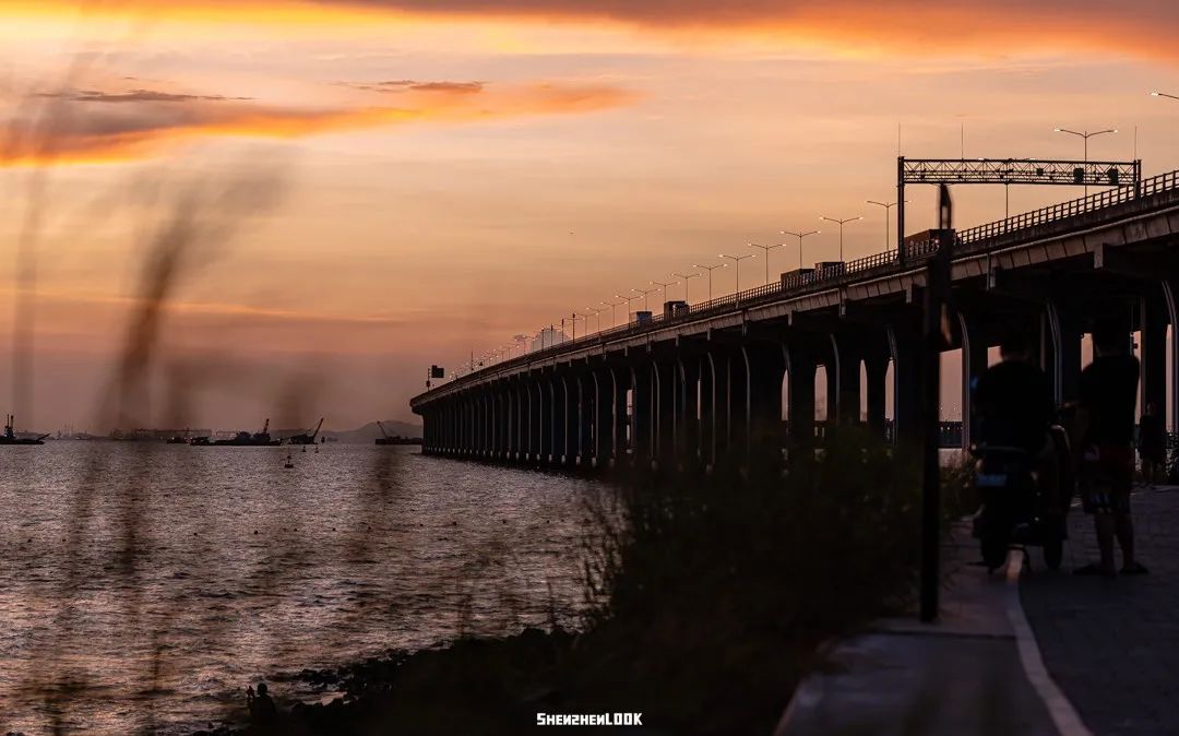 广深沿江高速公路,被誉为“深圳最美公路,其深圳段的大部分都建于海上,将西湾的海阔天空一分为二,往上余霞成绮,往下一色澄碧。
