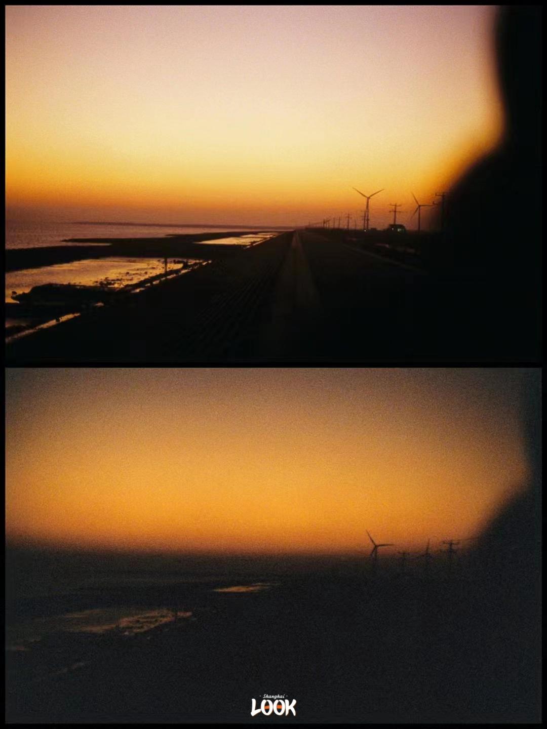 这里有整齐的风车,缓缓旋转,没有都市里的紧迫,可以暂时抛开焦虑的一切。站在堤坝向上看,月亮还挂在天上不愿离开,周围一片寂静,仿佛这片海域此刻只属于我一人。LOOK看海计划