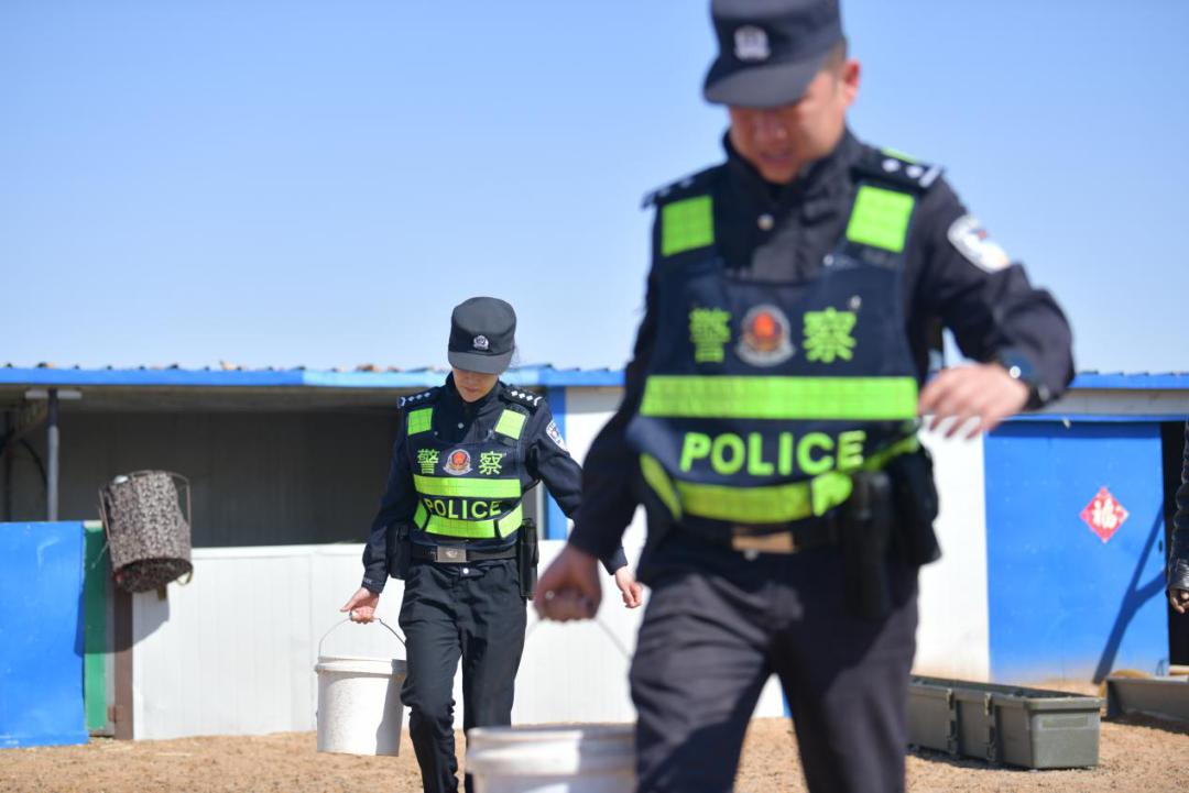 随着这个小小的“戍边夫妻”警务室的成立,夫妻二人负责复杂区域的巡逻防控,也及时为困难群众提供帮助。五间砖房支口锅,两人一狗一台车。李文娜和徐乃超每天清晨的第一项工作,就是清扫院子里夜晚刮下的厚厚沙土。旷日持久的风沙蹂躏着这里的土地,刮沙尘暴的夜晚,他们戴着口罩睡觉都会被呛醒。饮用水和生活用水要到几十公里外去拉,洗完脸的水洗脚,头发不敢洗,洗澡更是奢侈。