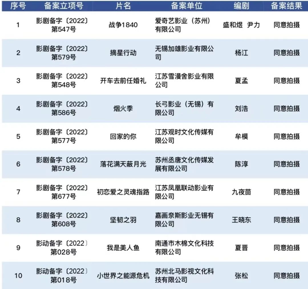 近日,国家电影局发布关于2022年2月全国电影剧本(梗概)备案、立项公示的通知。江苏共有10部电影作品的剧本(梗概)通过备案,一半出自无锡影都。