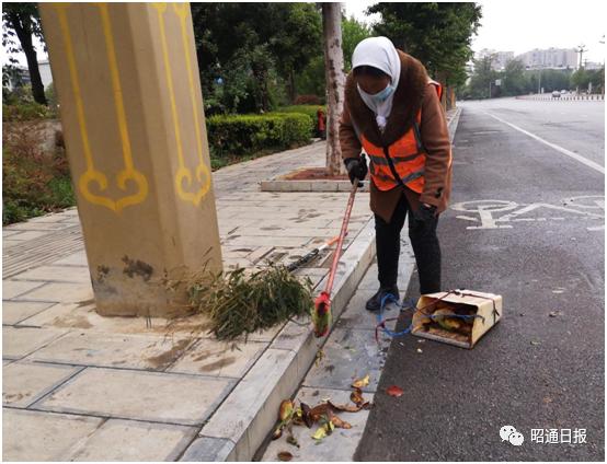 最近几晚,昭阳城区都在下雨。每天清晨,记者行走在昭阳城的大街小巷,总能看到身着黄色马褂的环卫工人在街道上忙碌着清扫落叶和垃圾、清运垃圾,不一会儿,街道就因为他们的辛勤劳作而变得干净清洁。