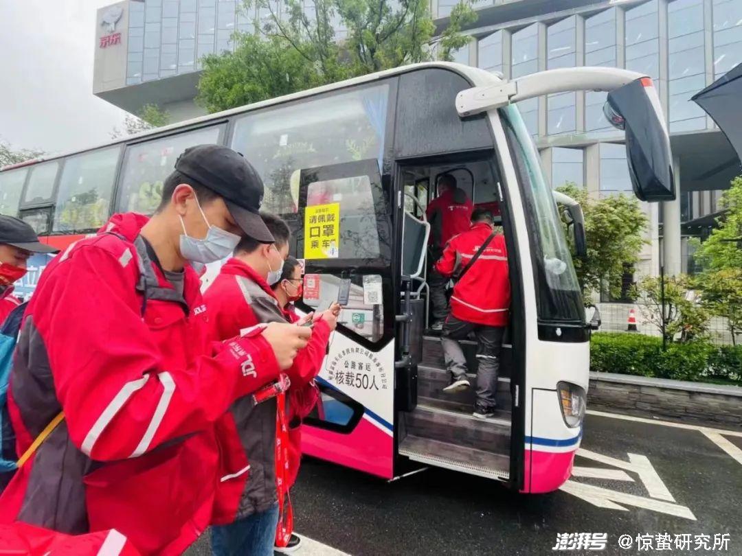 来自四川都江堰的孔马追今年27岁,同时也是两个孩子的父亲,他最小的孩子才9个月。惊蛰研究所和孔马追连线时已经是4月20日晚上的11点,此时的他刚吃过晚饭,正与京东上海青浦区站点的其他援沪快递员们,一起等待前往公司安排的酒店。