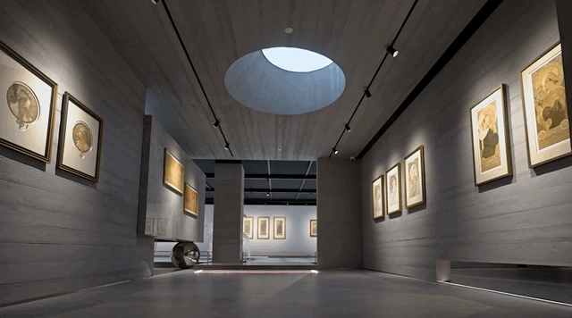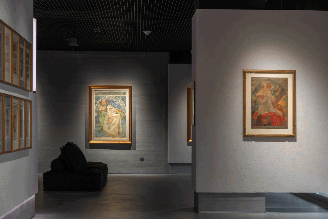 设计师利用间接照明凸显建筑的几何造型,并通过聚光灯强调了美术作品的细节,可变温光影也充分考虑了美术作品的安全性。走近美术馆中这些静谧又无比热烈的画作,你会和小鹿一样为穆夏一生的热爱与执着所触动,也会被他笔下女神睥睨一切的目光以及他的广阔胸怀所震撼。