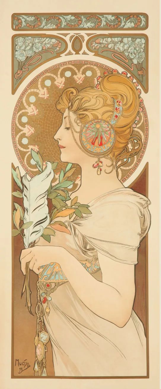 报春花和羽毛/1899至于穆夏生前出版过的那本大名鼎鼎的《装饰文档》,美术馆亦在此收录了大量手稿。