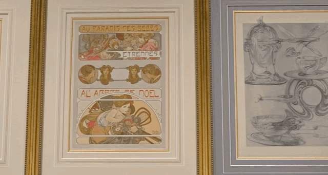 法国古董钟在角落静静守候光阴,LV箱上的鸟笼式八音盒与挂画里的风景相映成趣/ 藏品来自独角鹿来到放映厅中,我们更可以全方位地了解他的生平、艺术创作过程以及他身处的时代风潮,从而深刻理解穆夏风格的形成。