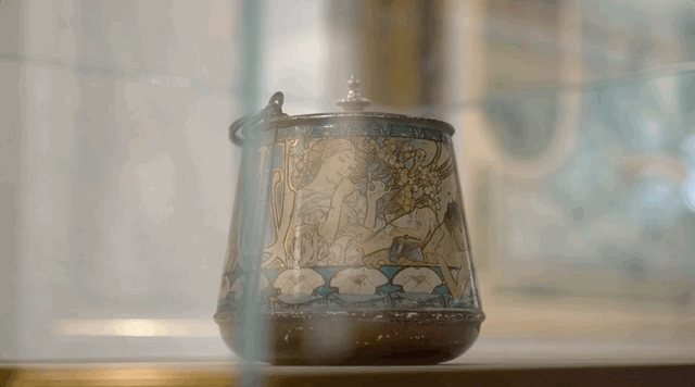 观者不妨驻足细细欣赏古董厅中的其他古物,寻一寻它们与穆夏笔下色彩及线条的奇妙“亲缘”。