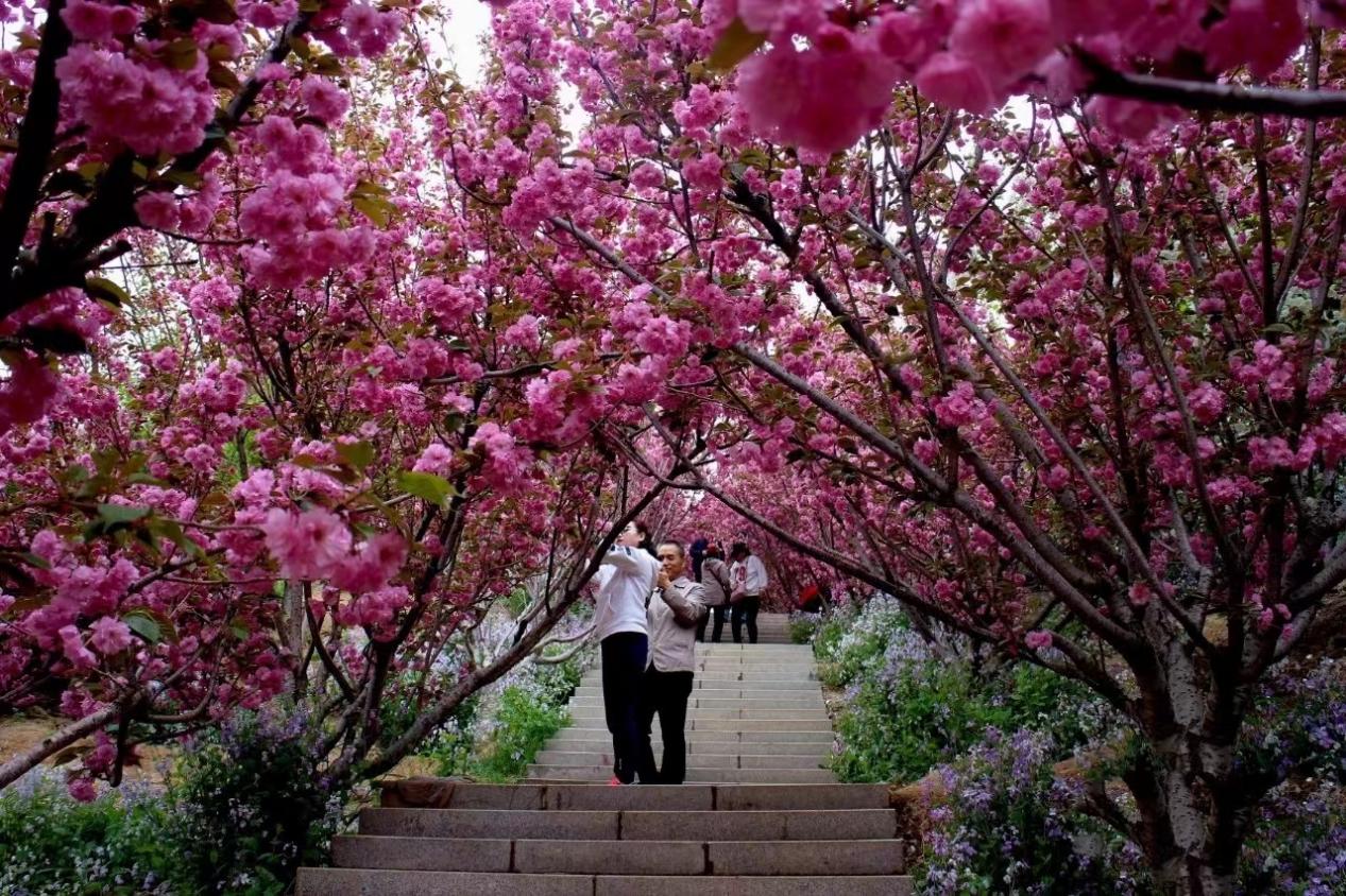 粉色——娇艳欲滴,纯真浪漫春天、樱花、爱情总是让人联想在一起。在这个春天,去玉泉山城郊森林公园,和最爱的人沉溺在千亩樱花海中,感受心动的信号。还有和平公园的晚樱绽放,春繁烂漫,远处望去,凝霞散景、落英缤纷,短暂又迷人的樱花令人迷醉。