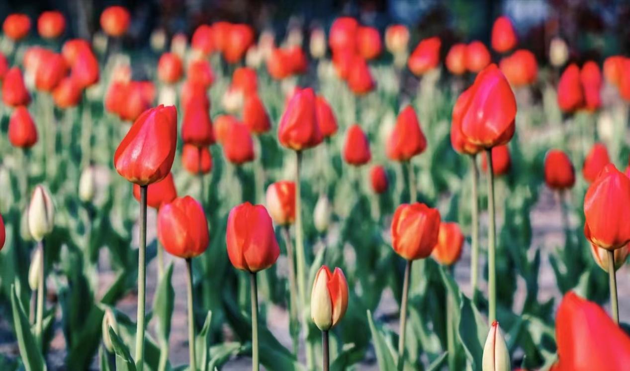 今年最出圈的当属高雅金贵的郁金香,一株一株好似高傲的公主,轻盈地游走在时尚舞台和大众生活。当夕阳的余晖洒满晋阳湖湖面,郁金香也忙着探头沐浴阳光,不同颜色、不同品种的郁金香竞相开放,一看入眼,再看入心。春天的温柔,满眼都是郁金香。迎泽公园的郁金香今年开得特别好看,携相爱的人一起走进迎泽公园郁金香花海,希望看到的人能够收获最浪漫的故事和永恒的幸福。