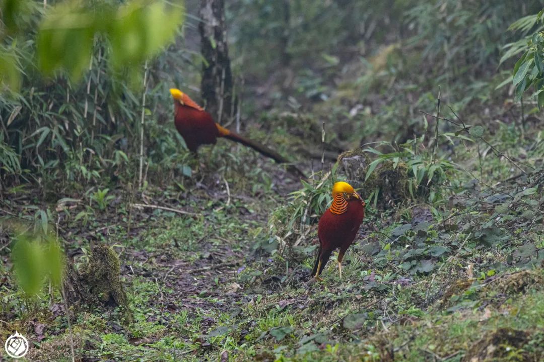 而且,我们还发现了一个规律:大太阳天,红腹锦鸡基本不到开阔地区来。只有阴雨或者雾天,它们才更活跃,更大胆。这倒是和拍猴的天气要求是反的,很互补!