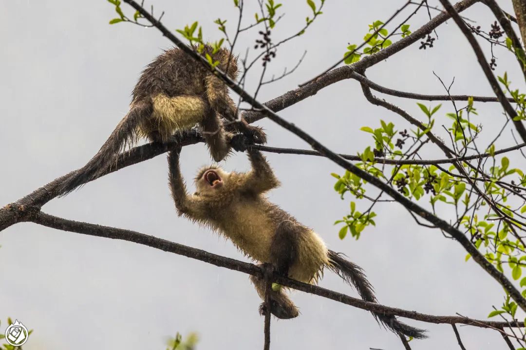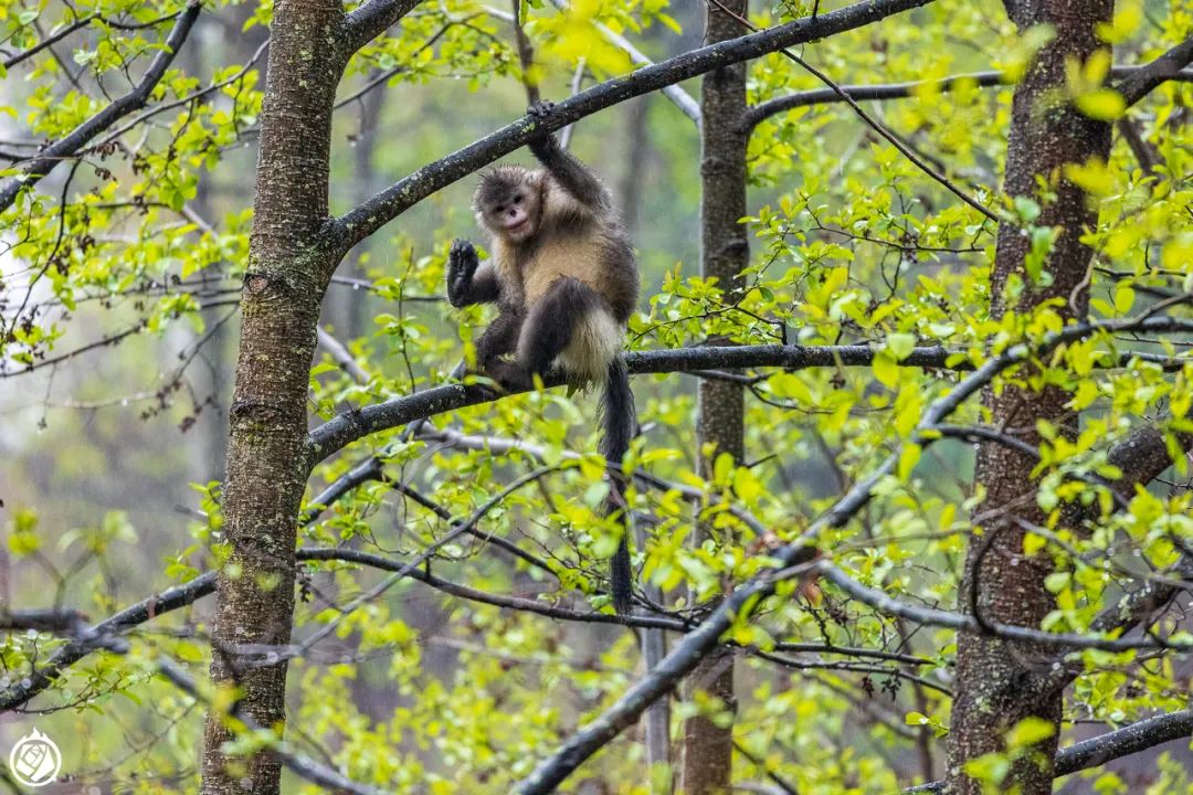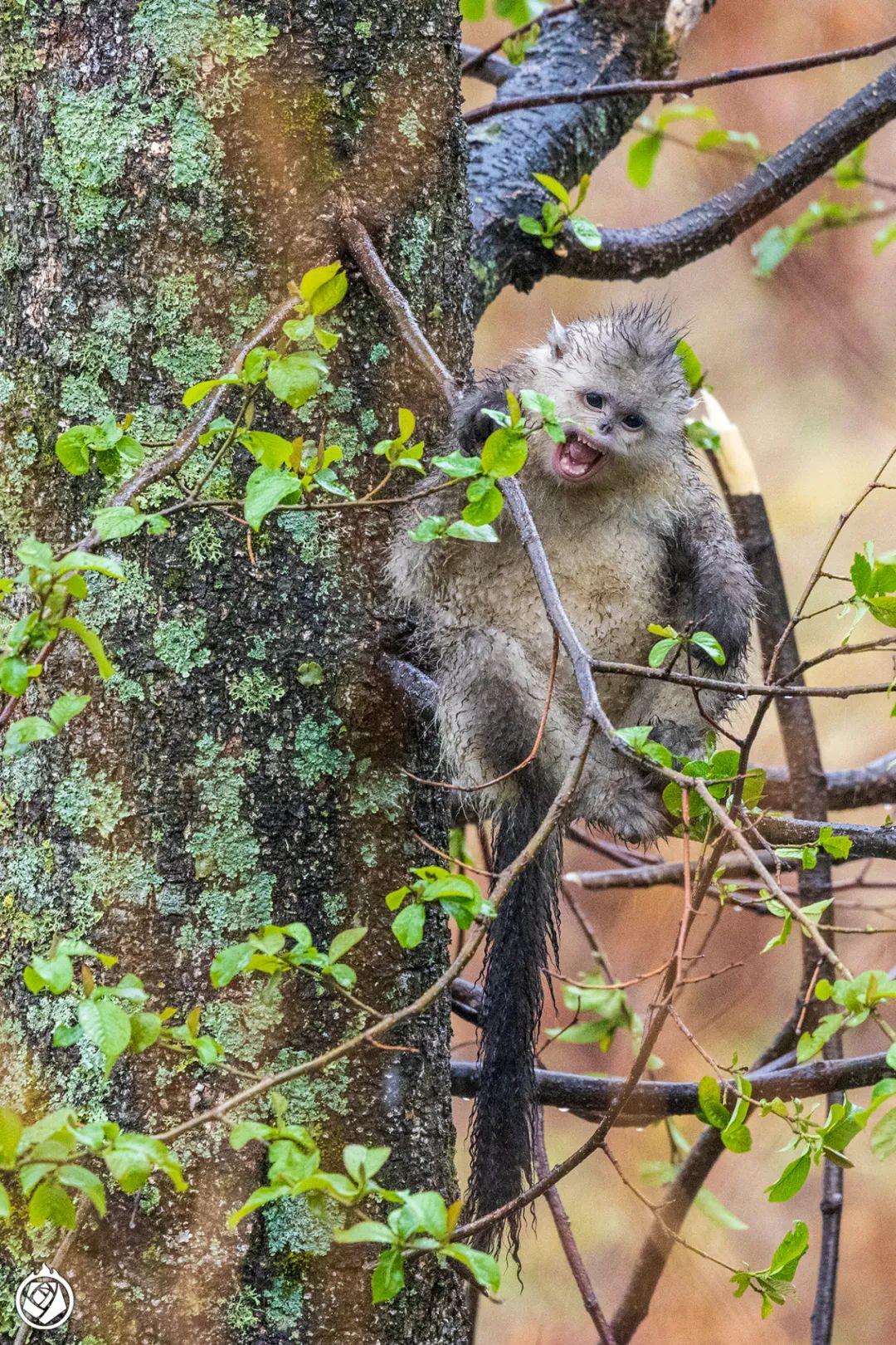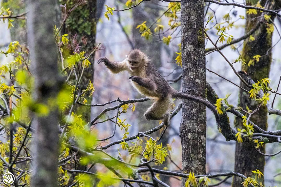 拍摄真正的野生动物和拍动物园或者鸟塘里的动物完全不一样,需要扎实的准备、辛勤的寻找和一吨运气。我们为啥会选择三、四月去拍摄呢?那是因为,初春的树叶刚刚吐芽,树叶的郁闭度比较低,不会遮挡住黔金丝猴。这是每年最容易拍摄的季节。