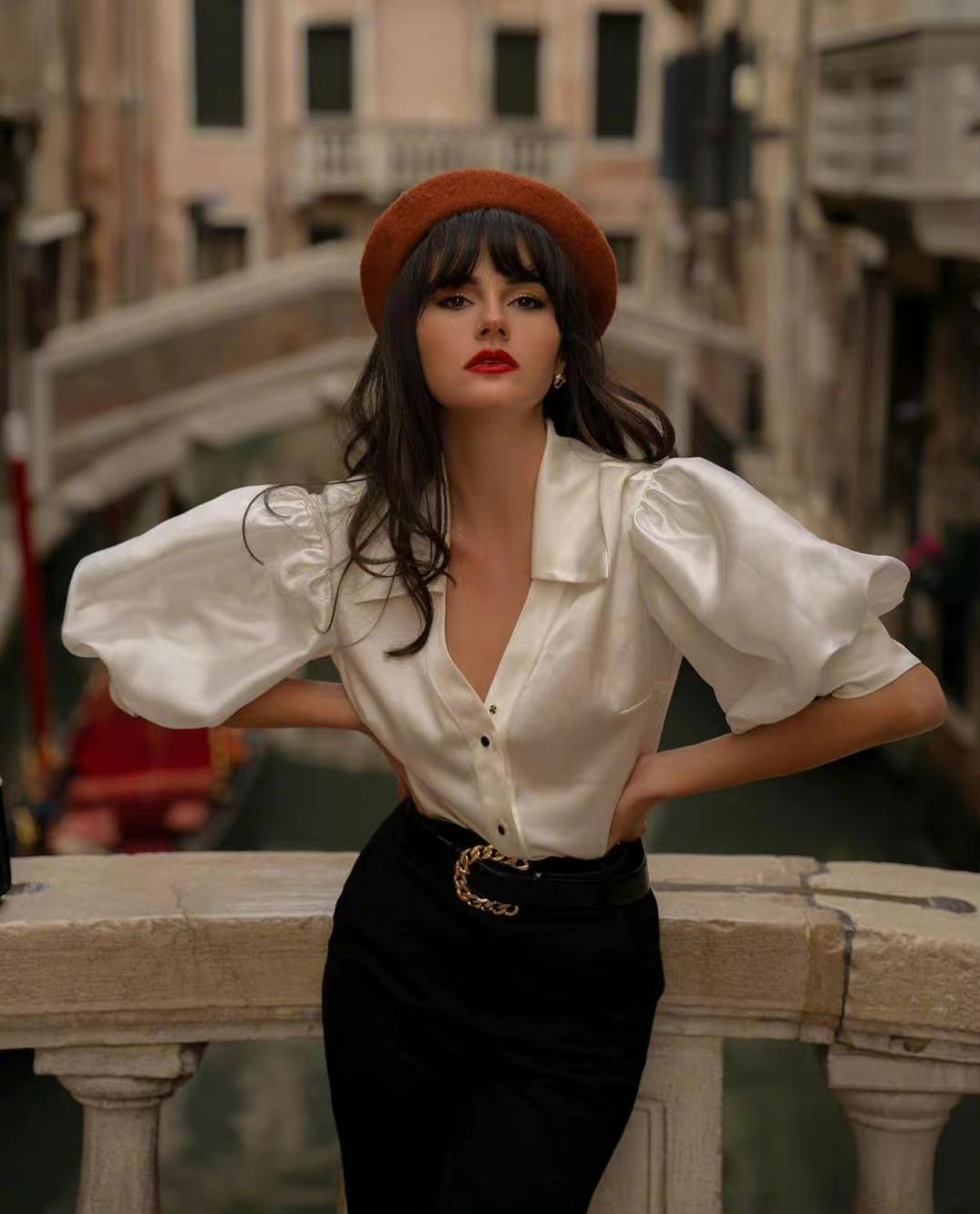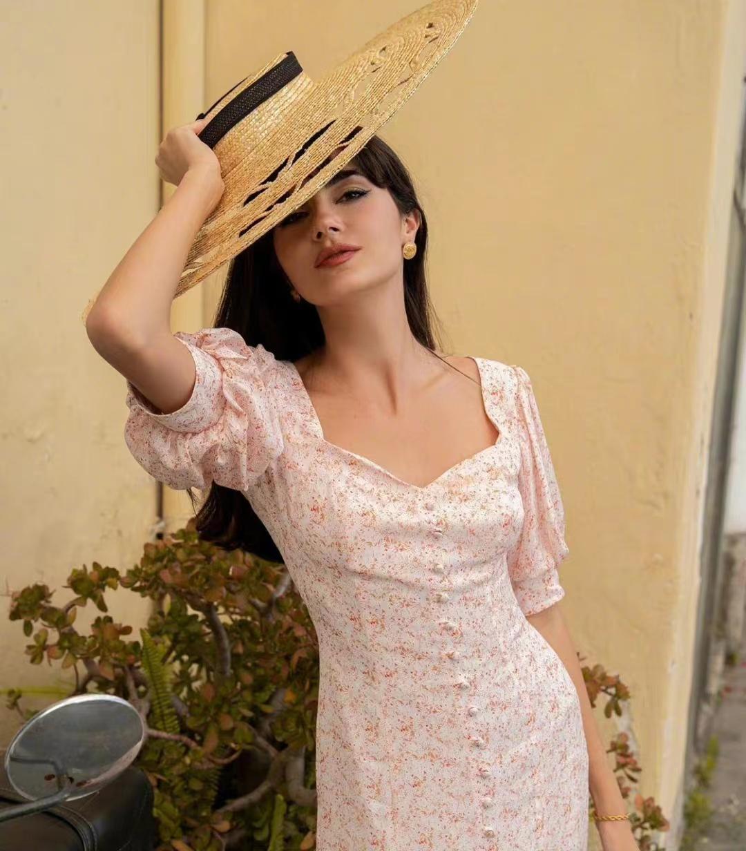 像泡泡袖、一字领、茶歇裙、A字裙等,都很适合苹果们~
