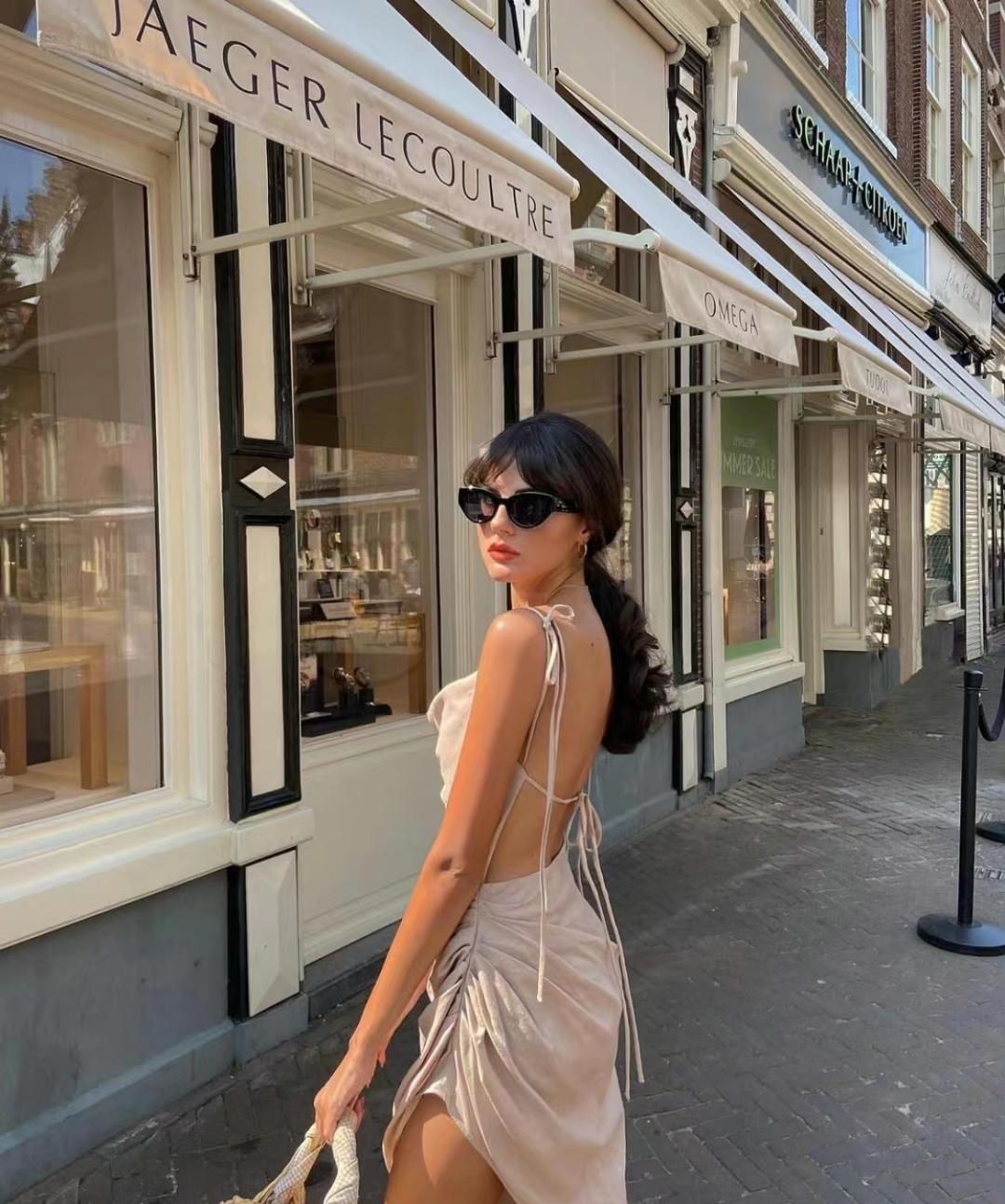 同理,在选择连衣裙时,尽量选择收腰的,从视觉上降低对身材的关注度,或适当拉高腰线,整体看起来更加显瘦。H型的筒们