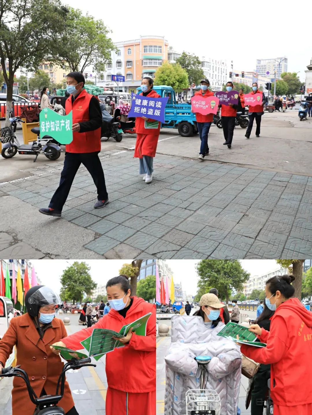 在县临港产业区、燕尾港镇行政楼大厅,村(社区)、服务中心大厅等公共场所利用宣传栏、电子显示屏等载体广泛张贴、刊播公益广告、宣传片。区镇“公众号”平台在4月20日至26日转载知识产权宣传资料。区镇新时代文明实践所志愿者在居民小区发放“知识产权”宣传明白纸,普及版权知识,强化版权意识。此外,区镇组织机关工作人员观看知识产权保护宣传片;组织志愿者走进辖区学校开展“青少年版权保护季”行动。
