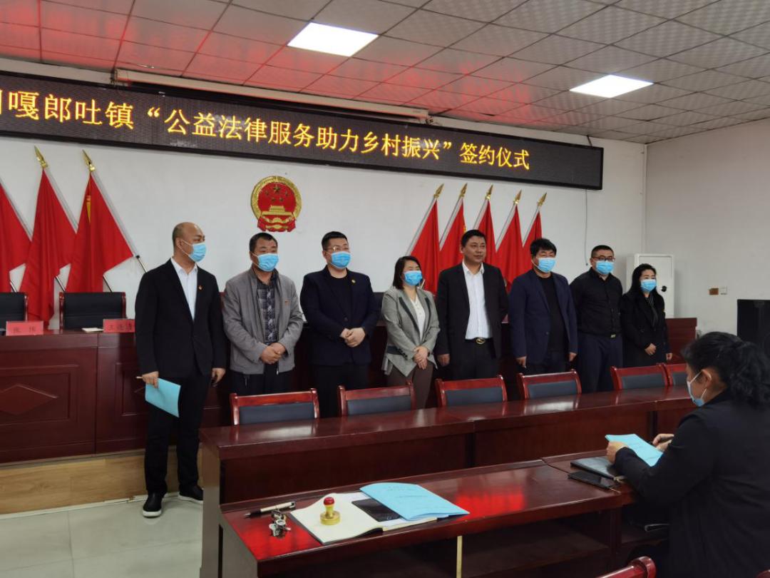 日前,内蒙古润贤律师事务所与内蒙古通辽市开鲁县吉日嘎郎吐镇政府(中译简称幸福镇)及下辖15个行政村分别签订了为期一年的无偿公益法律服务合同。