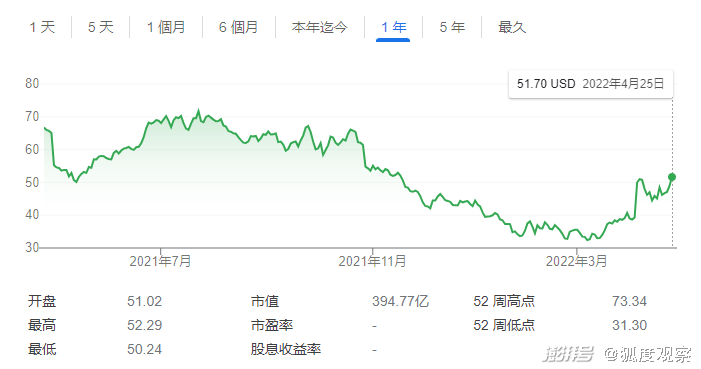 去年8月达到72美元的高点后,推特股价一路下滑,今年一季度都在30多美元左右。然后4号消息一出,当天就暴涨百分之三十多。