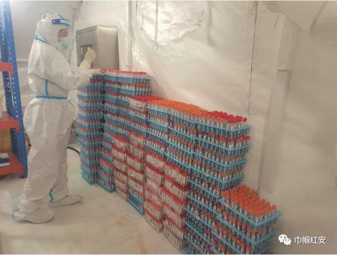 用王倩的话说:冬天来了,春天还会远吗?在3月18日晚上7点到达吉林后,她就和另外几名医疗队队员就被安排在长春市国际会展中心6号馆移动气膜实验室里,一区前处理,试剂配制;二区加样提取;三区扩增拧紧每一个标本瓶盖,检查每一处瓶身是否完好无损,排查出每一个阳性标本。这是她们每天重复无数次的动作。尽管工作的地方在寒风凛冽的室外,夜间可达到零下几度,在气膜实验室她每天工作8-12小时,从来没有按时下过班。庞大的标本量、工作的高要求,往往不能定时定点休息,在口渴、饥饿、疲乏的时候,她总是坚守在工作岗位,直到标本检查完毕,实验扩增结束到凌晨才回到住所休息,短短的一个多月的努力工作,她和小伙伴们已经累计完成已经完成66万管的检测任务。
