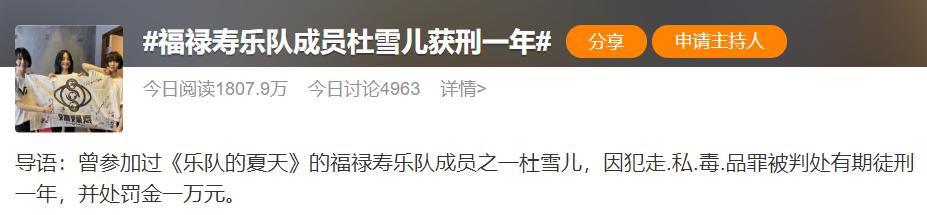 后有福禄寿乐队成员杜雪儿走私毒品。服完一年刑期后,才被曝光。