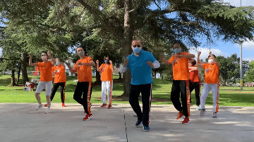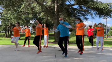 到了五月份的时候,随着美国抗疫政策的调整,管控松动了许多,已经允许出门散步或是运动。因为Rosemead公园与住所稍有距离,所以钟先生决定在社区的空地上跳舞。
