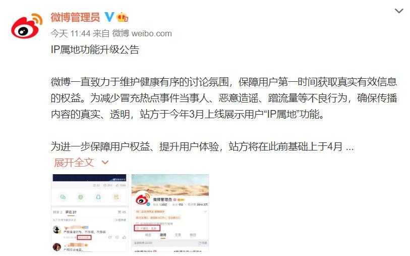 @微博管理员 发布《IP属地功能升级公告》