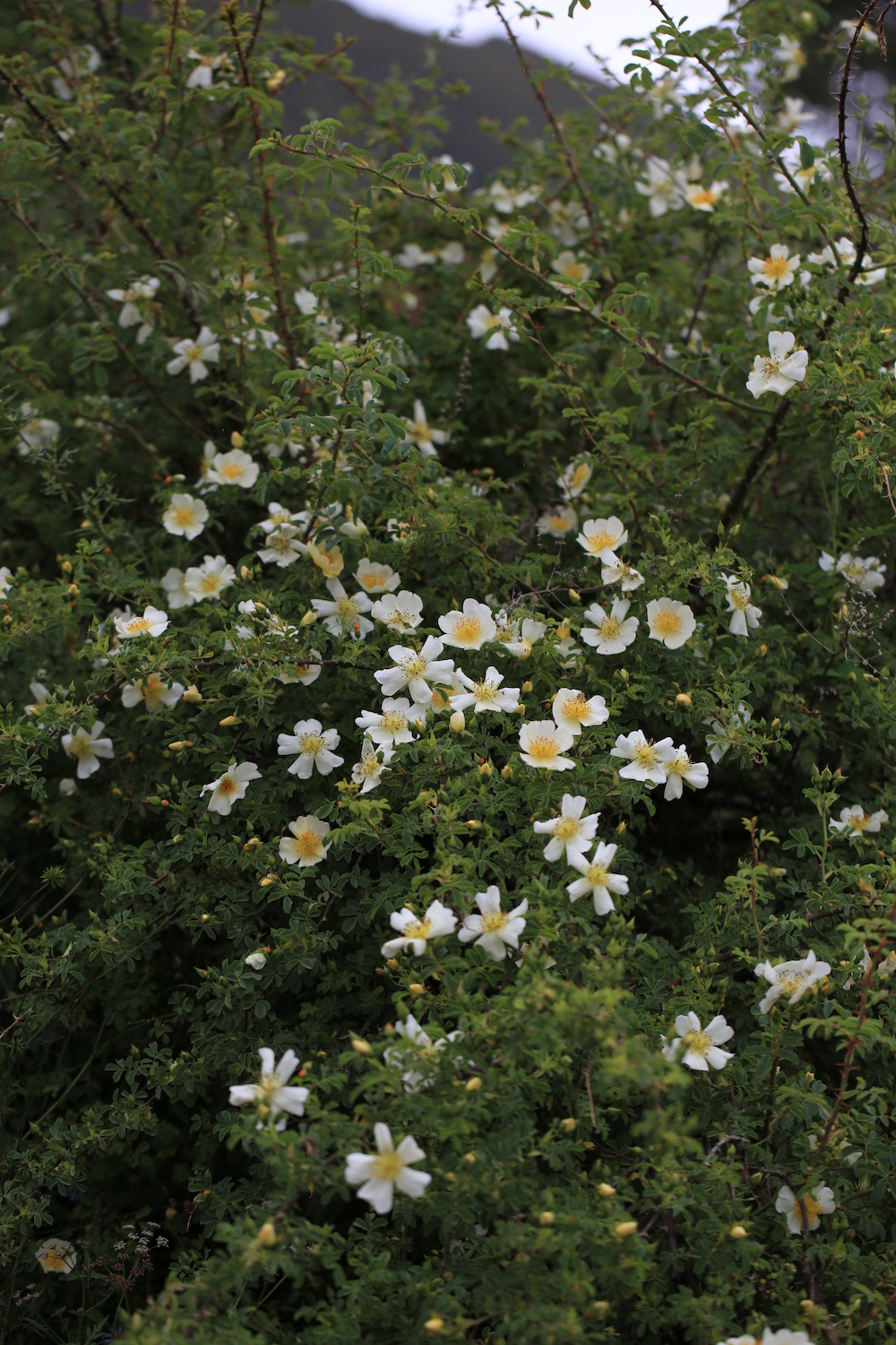 跟悬钩子蔷薇很相似的川滇蔷薇,我国有多种白色单瓣的野生蔷薇。摄于四川金川。 周敏