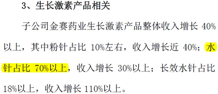 今年3月17日,长春高新在投资者电话会议上说明,金赛药业生长激素产品中,水针占比70%。