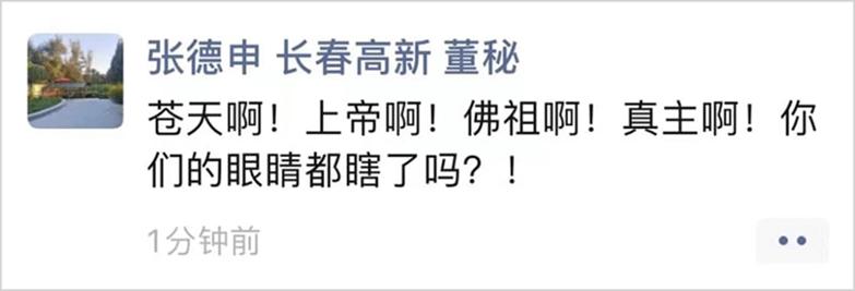 这并不是散户在股吧的哀嚎,而是长春高新的董秘张德申发的朋友圈。