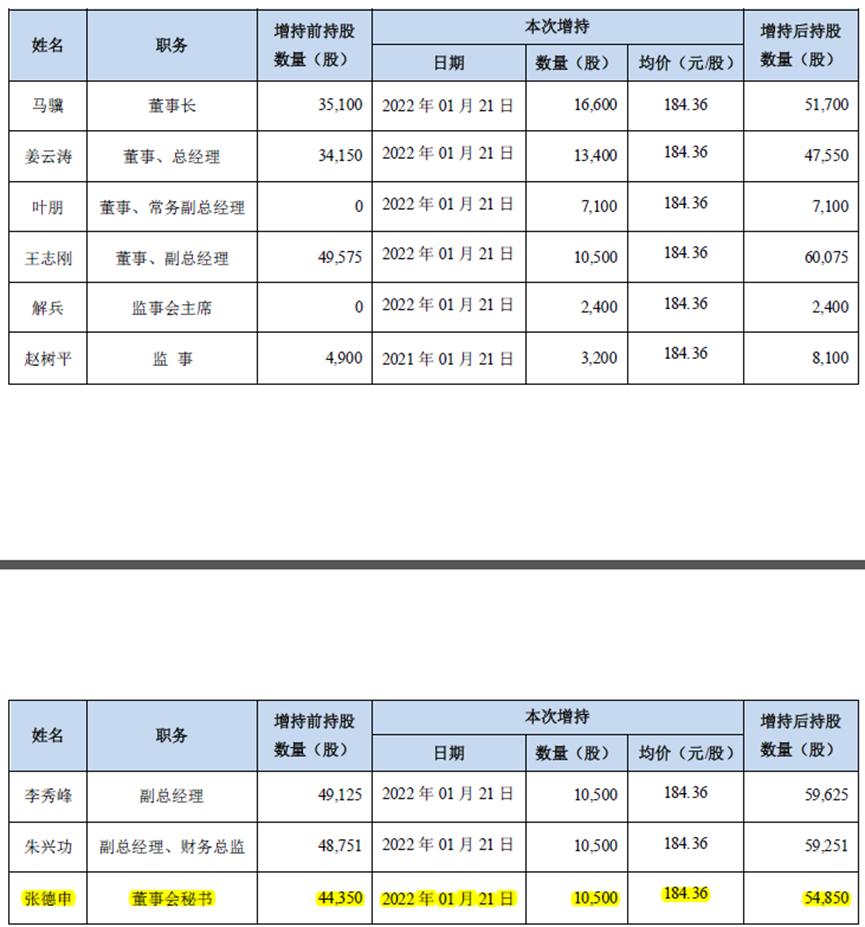 今年1月21日,长春高新股价连续跌停,5天内市值蒸发355.95亿元。公司高管为表忠心决定增持,董秘张德申增持后持股达54850股,比董事长和总经理的持股数还要高。