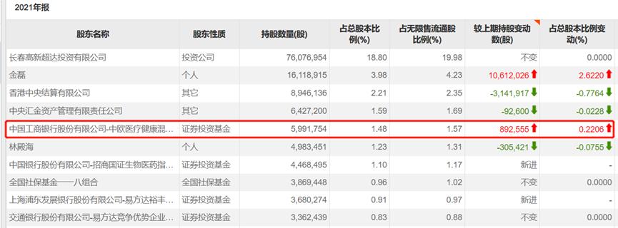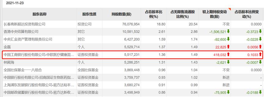 2021年11月23日信息显示,葛兰管理的中欧医疗健康混合基金通过增持41万股,成为长春高新第五大流通股东。