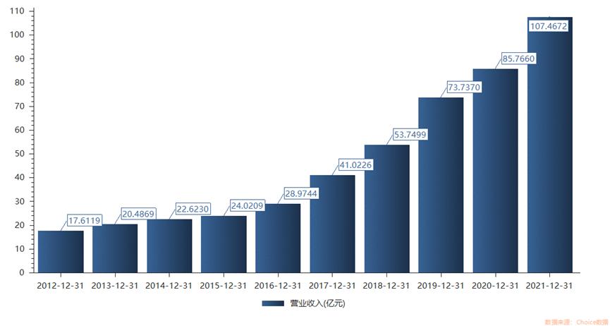 按2021年81.98亿营收和36.8亿净利润计算,仅仅6年时间营业收入就翻了7.7倍,净利润翻了9.7倍,十分惊人。