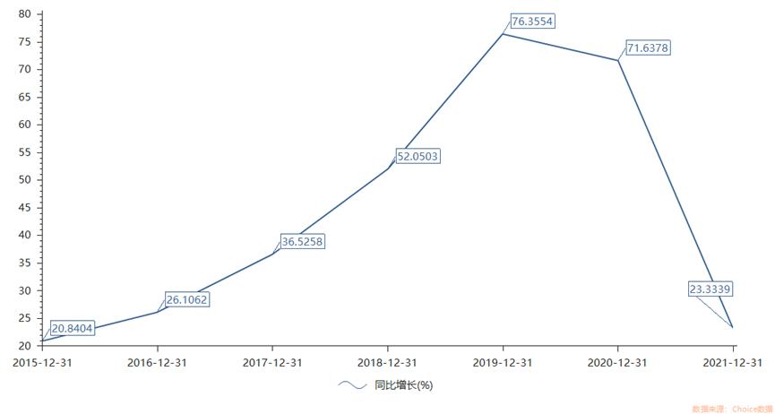2021年ROE相比2020年已经下降,归母净利润增速更是放缓到6年来最低水平,为23.3%,此前三年增速均在50%以上,近两年更是在70%以上。参考申万三级行业(医药生物-生物制品)的可比上市公司,长春高新净利润增速排名靠后,低于中位数26.6%。