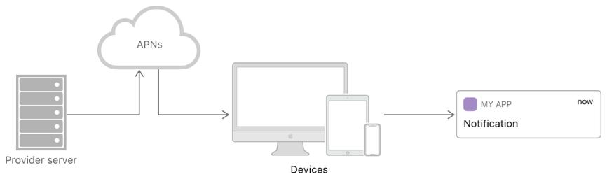 App 想要给 iPhone 推送的话,要先把推送发到专门负责推送的服务器上面,然后统一推送到 iPhone 上,这样大家就能收到推送了。
