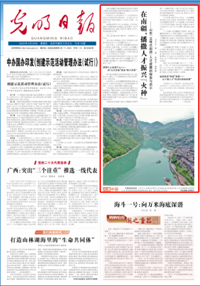 4月29日,《光明日报》头版以《在南疆,播撒人才振兴“火种”——山东“立体式组团”人才援疆的探索与启示》为题,点赞山东,文章称山东援疆以“立体式组团”人才援疆模式,组团选派各领域专业人才,注重提升当地造血能力,为喀什地区培育一支“永不带走的人才队伍”。