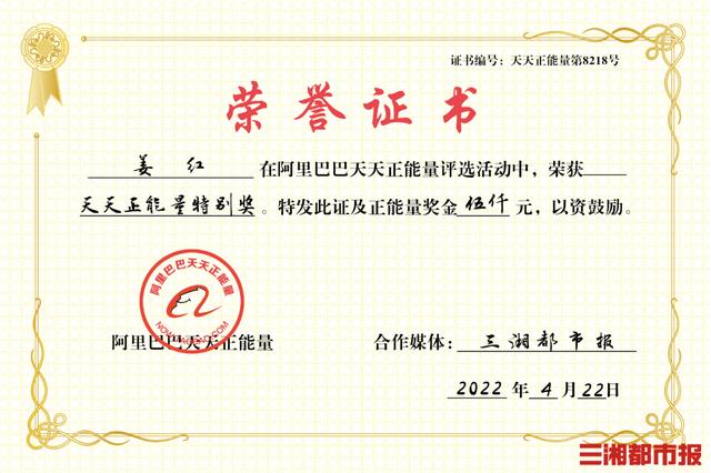 “易嗲能够得救,都是因为有好邻居。”连日来,姜红和周颖菁的事迹在小区里传开,大家纷纷点赞。日前,三湘都市报联合阿里巴巴天天正能量为姜红等颁发天天正能量奖,以及5000元奖金。