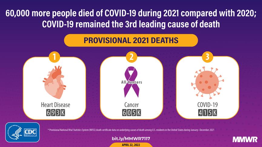 Omicron的新变体BA.2与BA.2.12.1两种病毒正在取代一开始的BA.1.1,成为主流新冠病毒。上周,CDC发布的数据报告显示,新冠病毒在2021年导致41万多人死亡,连续两年成为美国第3大死亡原因,威力不容小觑。