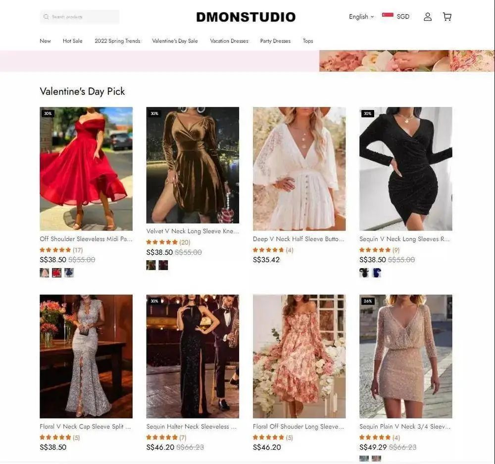 Dmonstudio 独立站商品展示截图不过,Dmonstudio 上大部分商品定价明显高于 SheIn,前者产品定价多超过 30 美金,而后者大量产品只在将价格锚定在 10 美金左右、追求极致性价比。