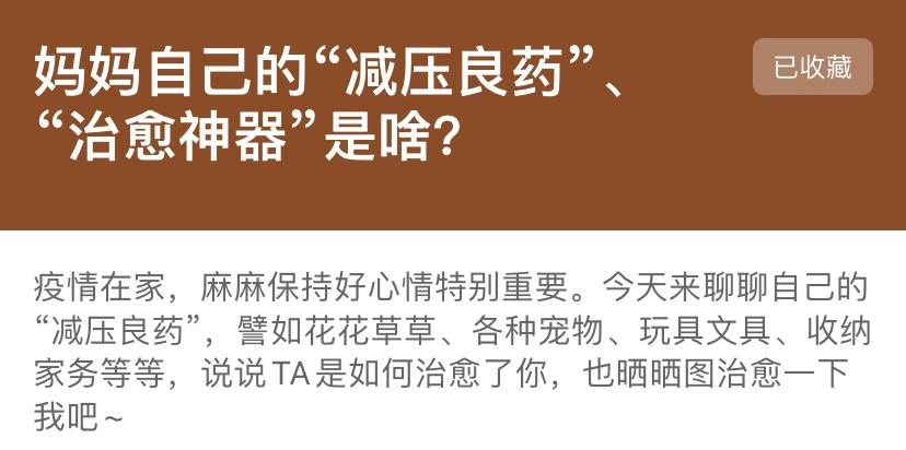 怎么办?我们需要自我解压,给自己找乐子、找疏解,甚至找“出气口”,让自己的负面情绪尽量“清零”。最近,我们问了社区花友,你亲测有效的“减压良药、治愈神器”是什么?大家的参与度很高,看来都有这方面的需求啊~